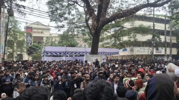 December 30 (Tuesday) University Vice-Chancellor Professor Dr. Mo Rezaul Karim gave this information after the syndicate meeting. Meanwhile, the students of Jagannath University Central Students’ Union (Jaksu) are protesting against the postponement of the elections. They started the protest on Tuesday (December 30) after 9 am. Meanwhile, the students said, “Jaksu is my right, students’ rights. Rais na jaksu? Jaksu jaksu. Address of brokers, will not be in this campus.” With different slogans.